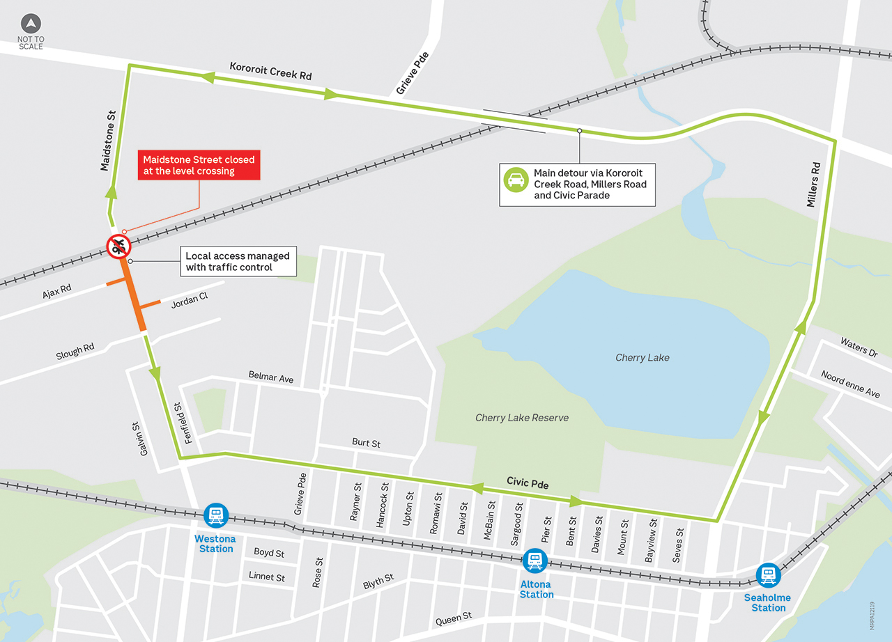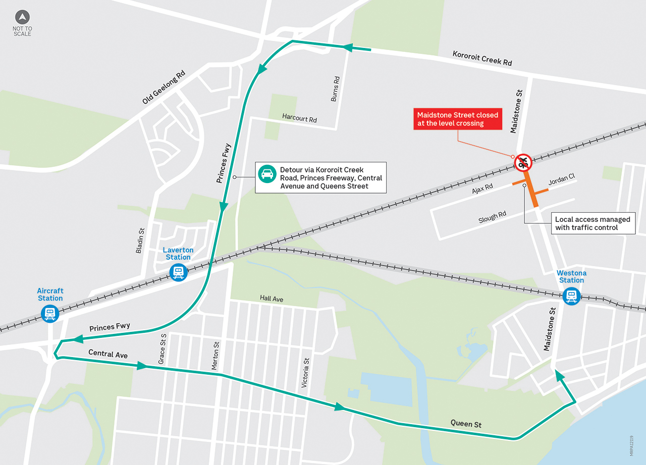 - All other vehicles to detour via Kororoit Creek Road, Millers Road and Civic Parade (map 1) or via Kororoit Creek Road, Princes Freeway, Central Avenue and Queen Street (map 2).