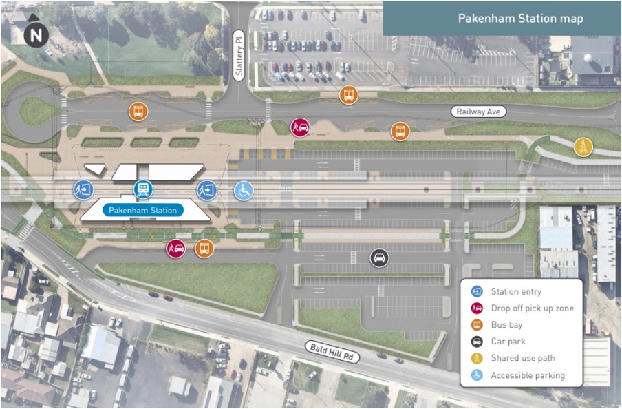 Pick up and drop off is open on the south side of the station with access off Bald Hill Road.