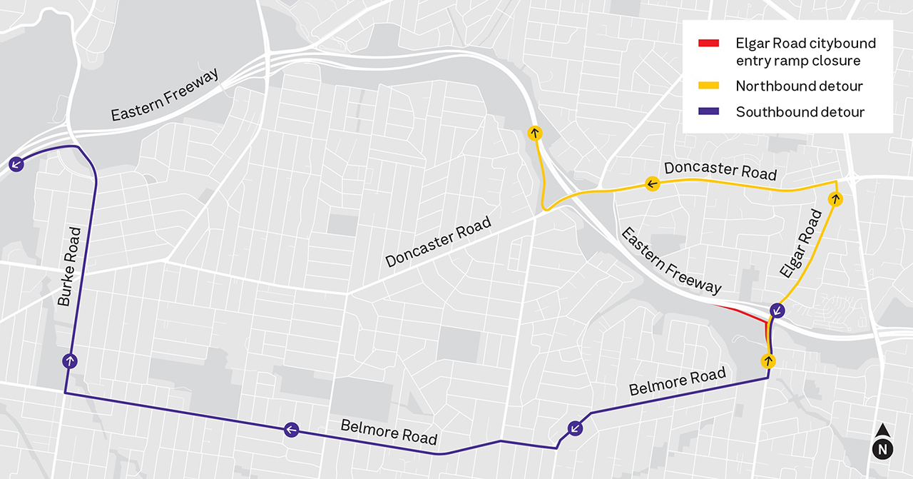 - southbound via Elgar Road, Belmore Road and Burke Road.