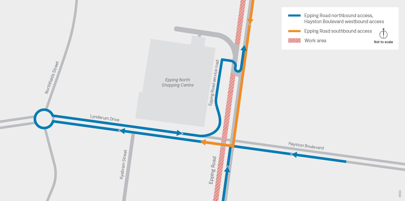 From 21 March until late August 2025, you’ll only be able to access the shops on Epping Road service road via Lyndarum Drive.