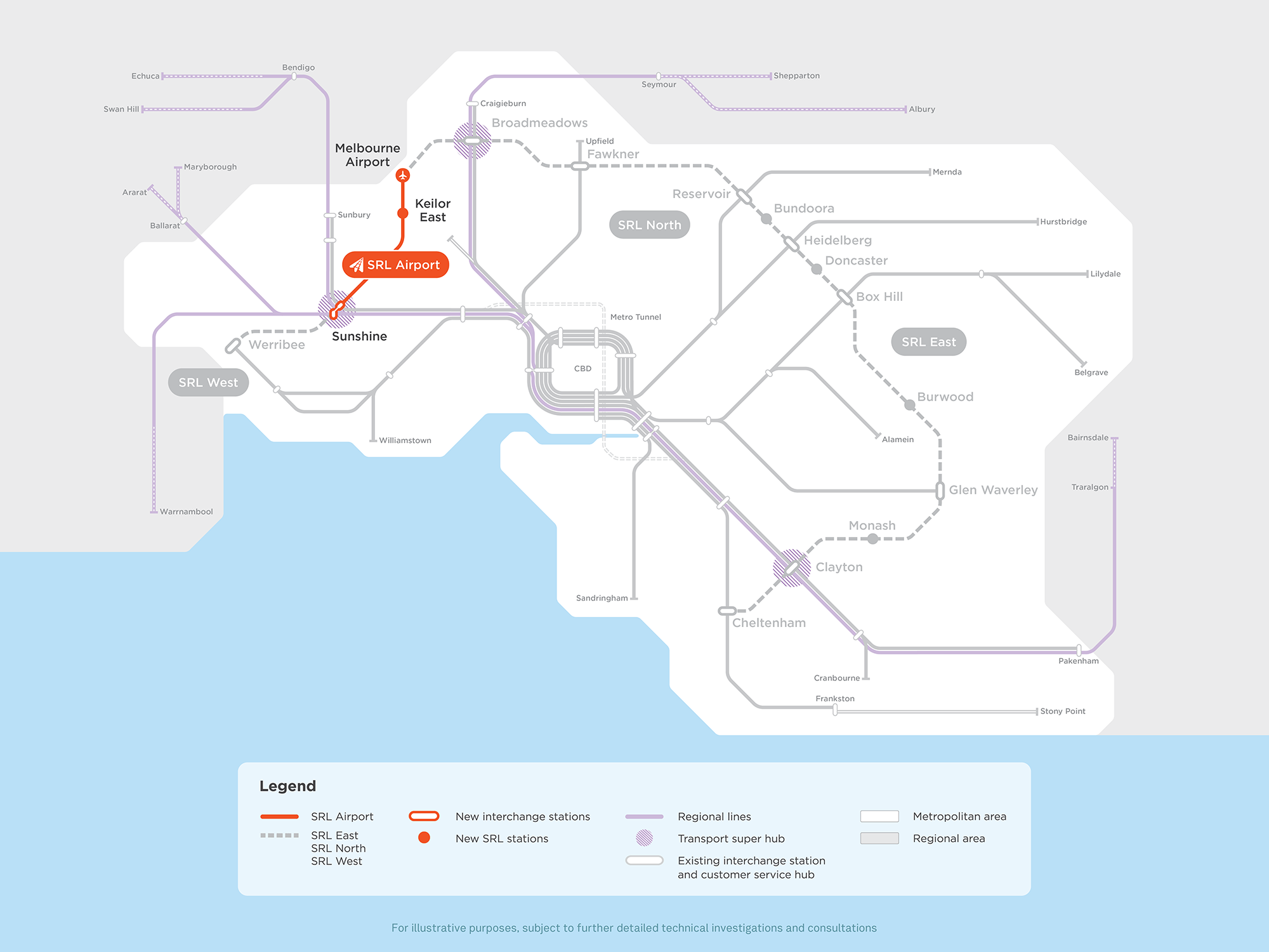 SRL Airport extends from Melbourne Airport to Sunshine and will be delivered by Rail Projects Victoria.
